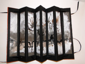 Nous aborderons deux techniques de fabrication d’un livre d’artiste, l’utilisation du papier et plus particuliérement les découpes et les pliages,